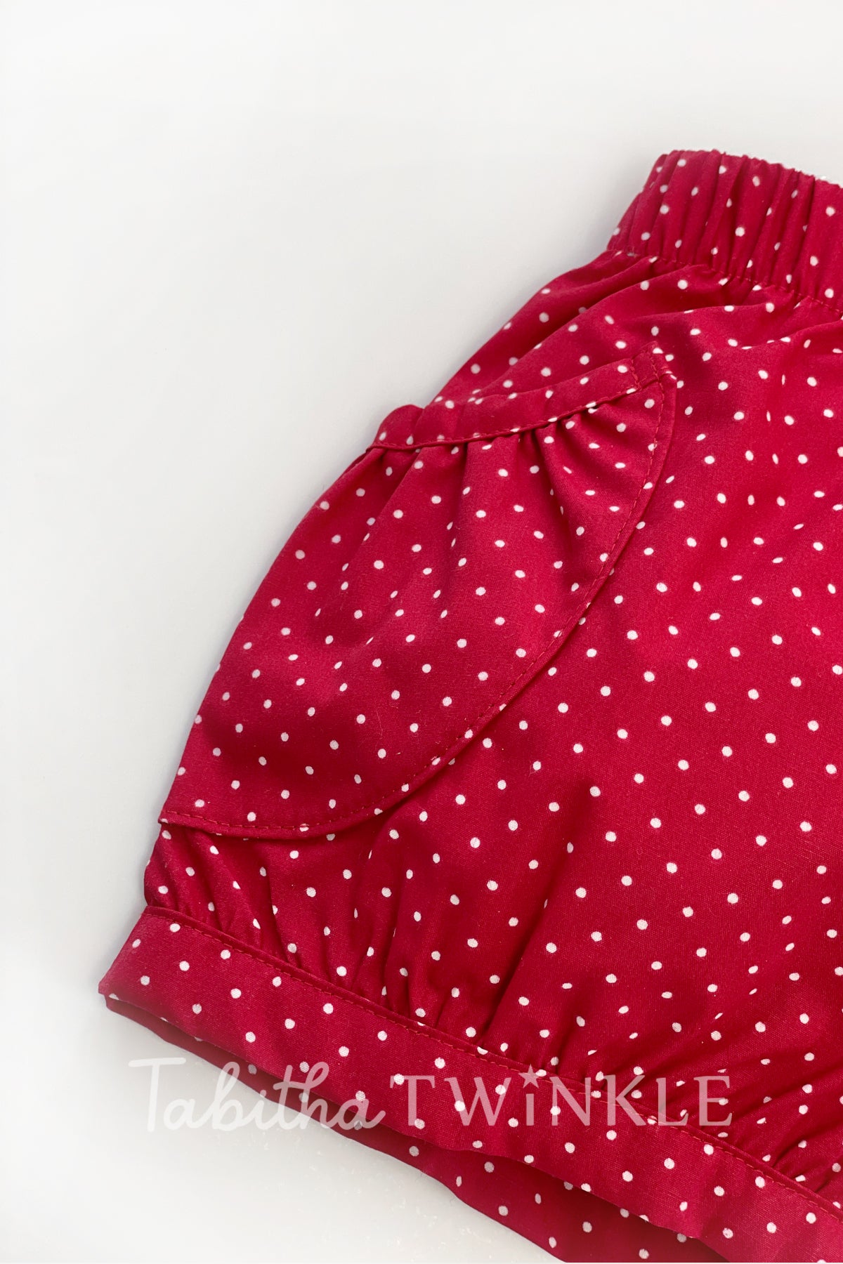 County Fair - Red Polka Dot Zoe Short - 5/6 is backordered and will ship as soon as it is back in stock.